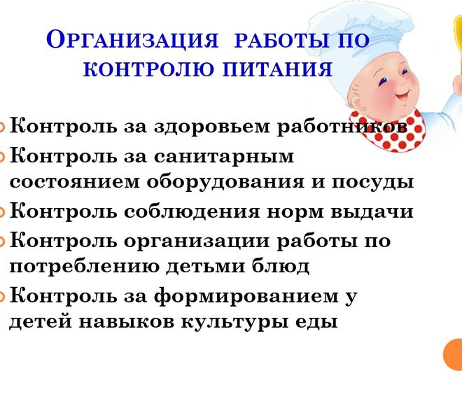 В каждой группе и пищеблоке вывешивается меню на каждый день,подписанное заведующим детским садом и медицинской сестрой.