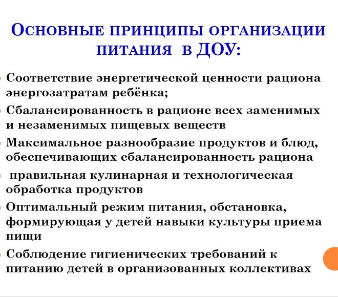 Питание в детском саду организовано в соответствии с: